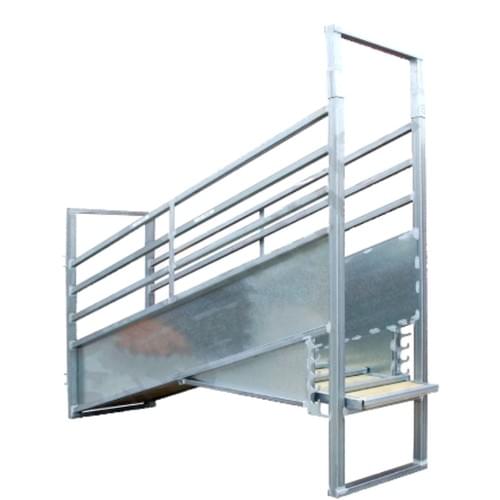 A cattle loading ramp is an inclined ramp connecting cattle sheds and transport trailers/trucks, designed to safely and efficiently load cattle onto transport vehicles. Its key features include a non-slip ribbed ramp surface to prevent cattle from slipping; an adjustable height design to accommodate height differences between vehicles; and a robust and durable construction, typically made of hot-dip galvanized steel for excellent rust resistance.