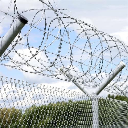 Razor barbed wire is a high-security fencing material made of a high-tensile core wire and a steel tape punched with sharp, spear-like barbs。core wire diameter of 2.5 mm, a barb thickness of 0.5 mm to 0.6 mm, and varying barb lengths and spacings depending on the model