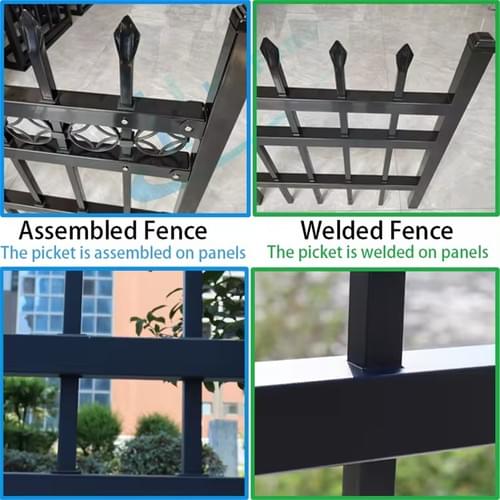 Zinc-steel fencing is available in various design models. Manufactured using galvanized pipes and powder-coated for corrosion resistance, aesthetic appeal, and protective function.